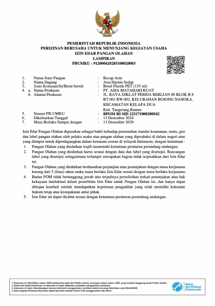 Sertifikat Halal BPJPH Nomor : ID36210000067440121