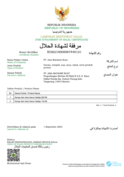 *Sertifikat HALAL BPJPH berlaku dan tidak perlu diperpanjang selama tidak ada perubahan komposisi bahan baku & PPH (Proses Produk Halal) dari produk terkait.